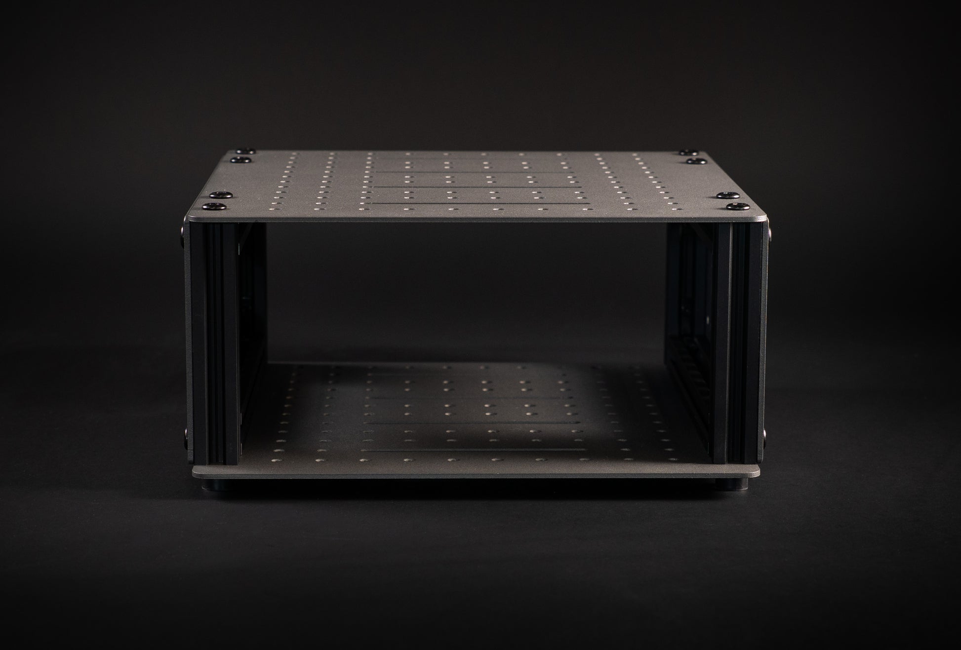 The "half" rack version of the 2.5 fly rack is a 10in width mini rack for small builds! Available with or without side panels, and featuring all the same build materials, finish, and customization of the full width 20 series racks.