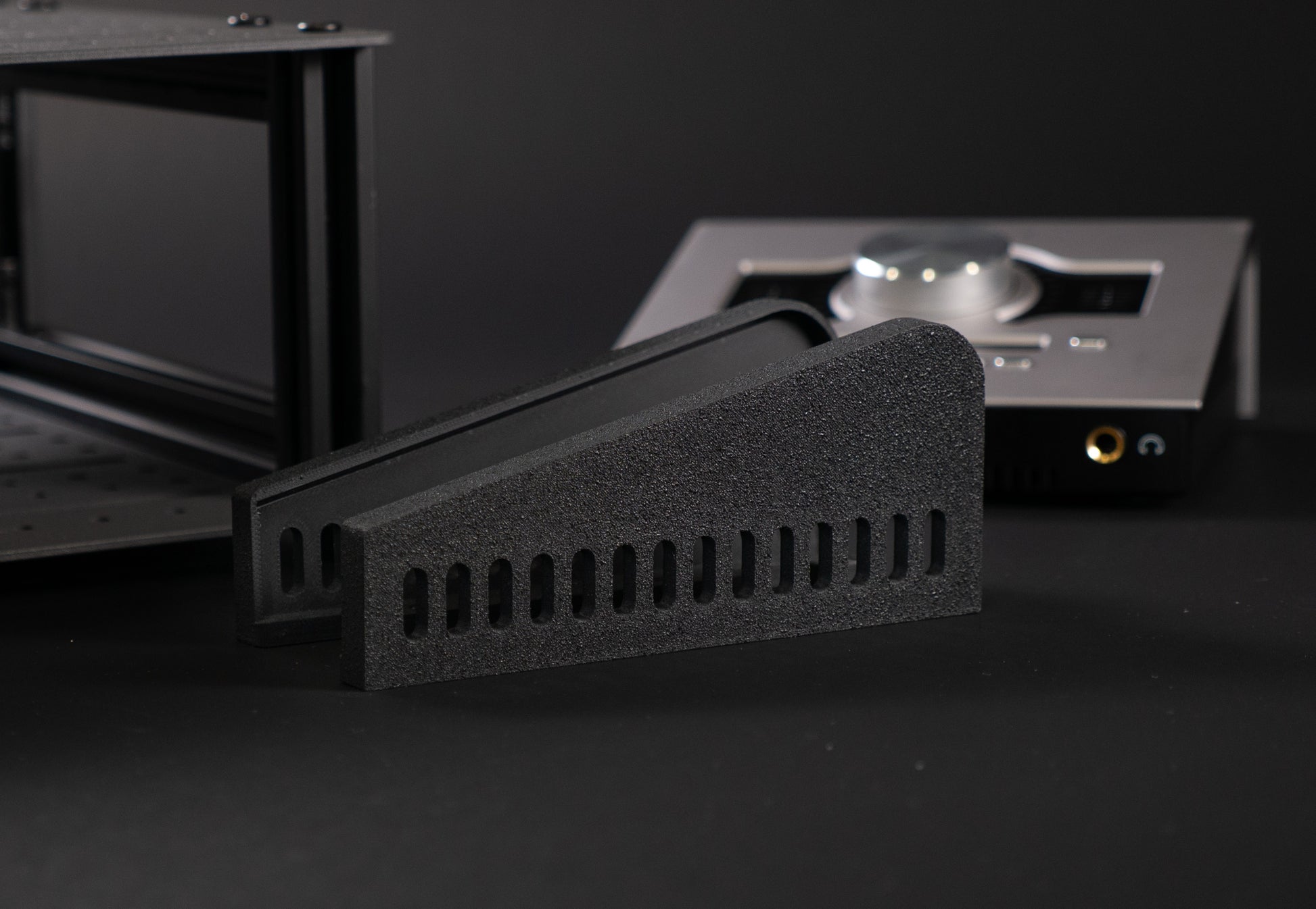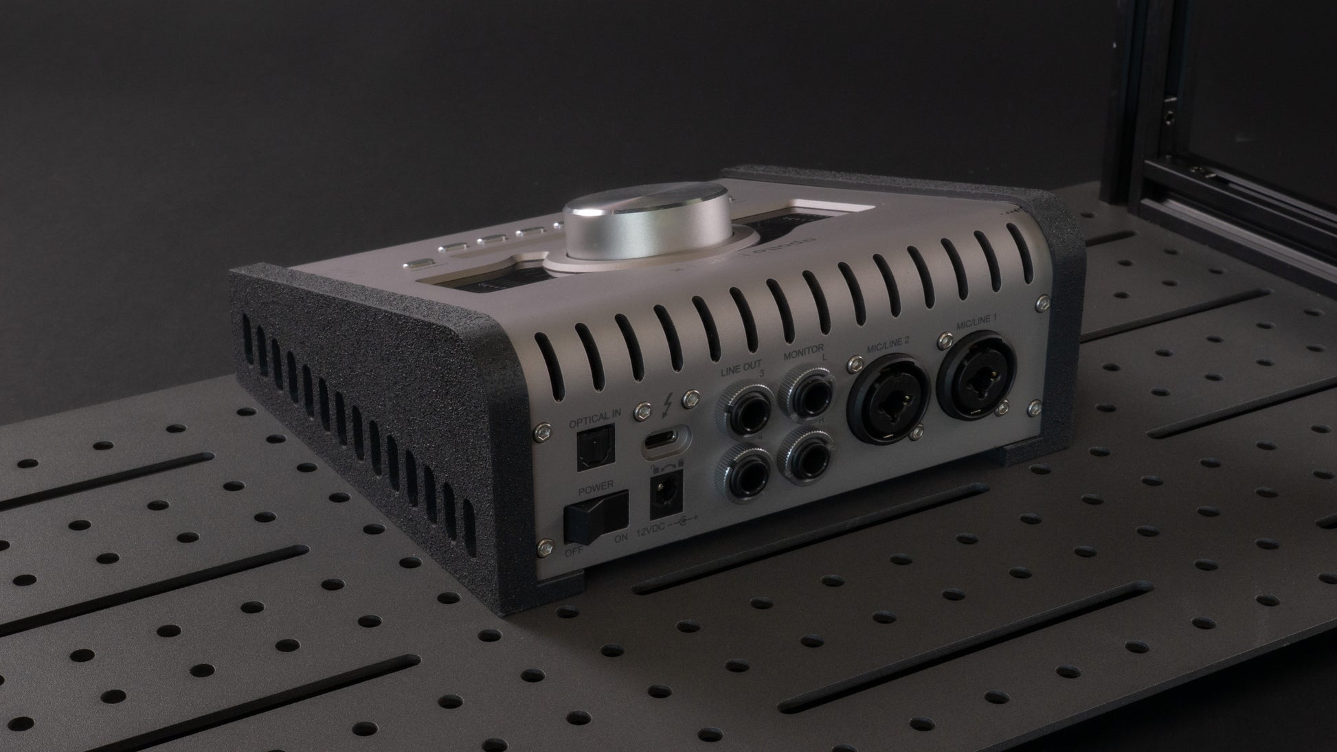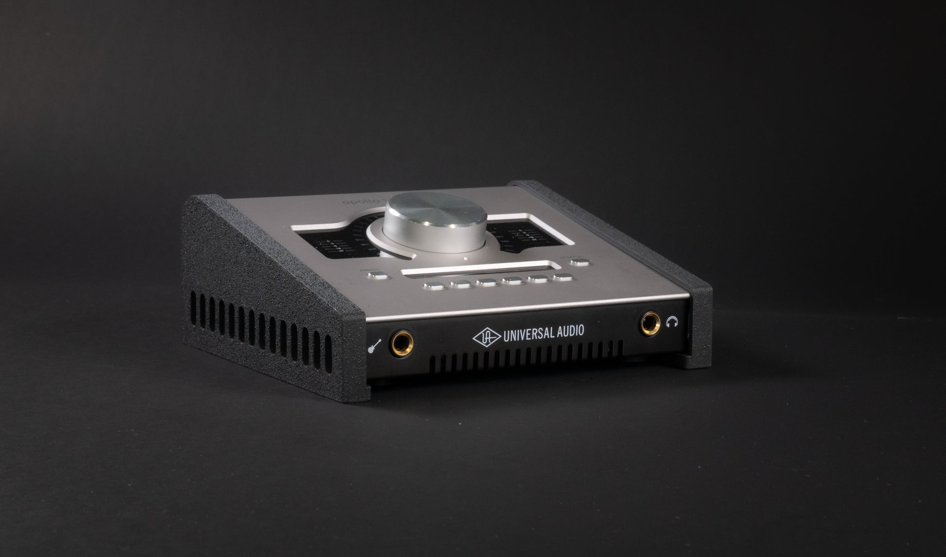 Custom side panels for mounting UA Apollo Twin to any 20 Series gridded rack. These mounts form fit to the sides of the Apollo and mount to the rack using 4 included M5 bolts.